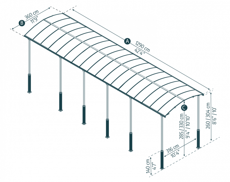 | C | Höhe | 285 / 330cm | 9'4" / 10'10"ft |