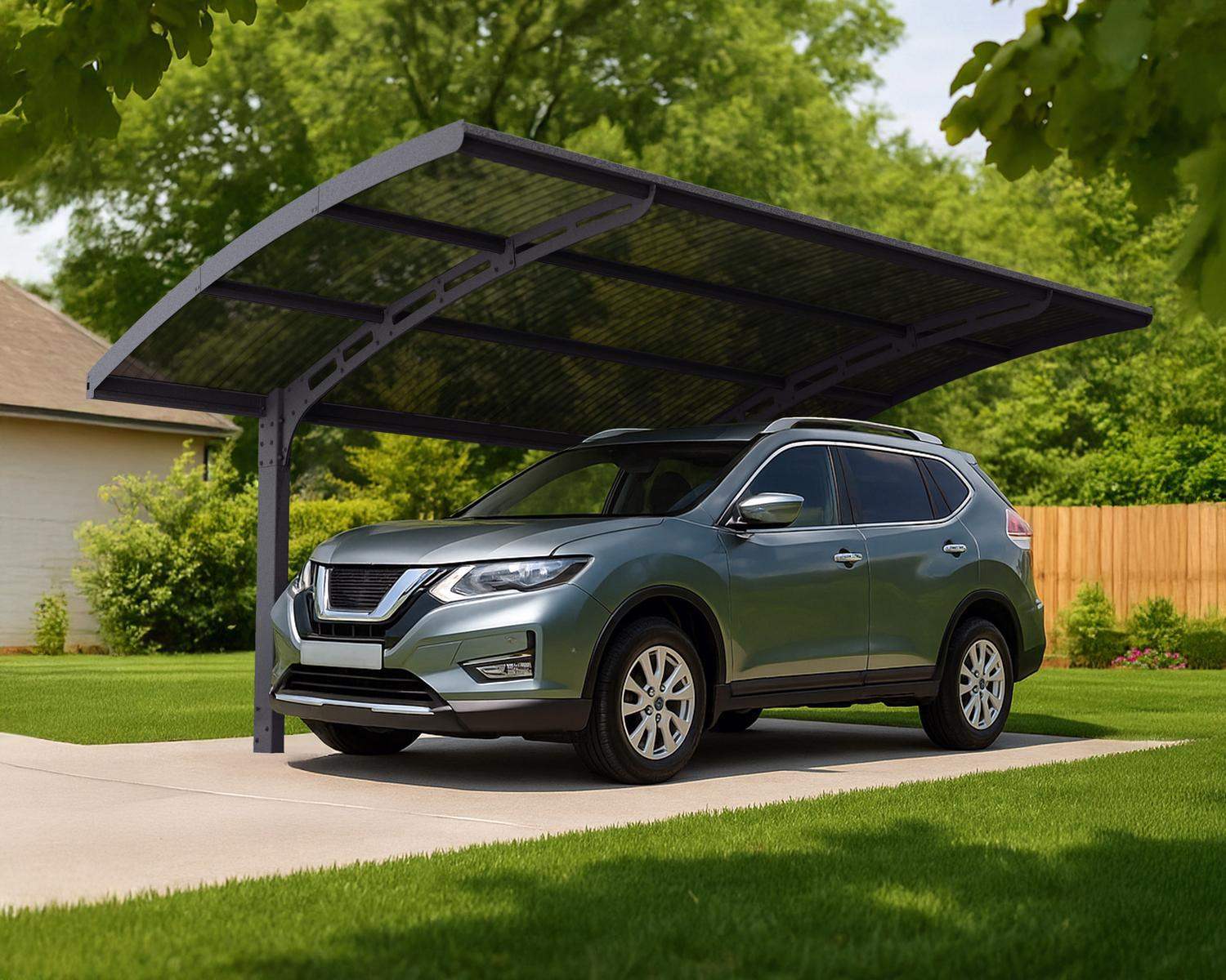 - Robuster Carport-Bausatz mit rostfreier Aluminiumstruktur, die reichlich Schatten spendet.