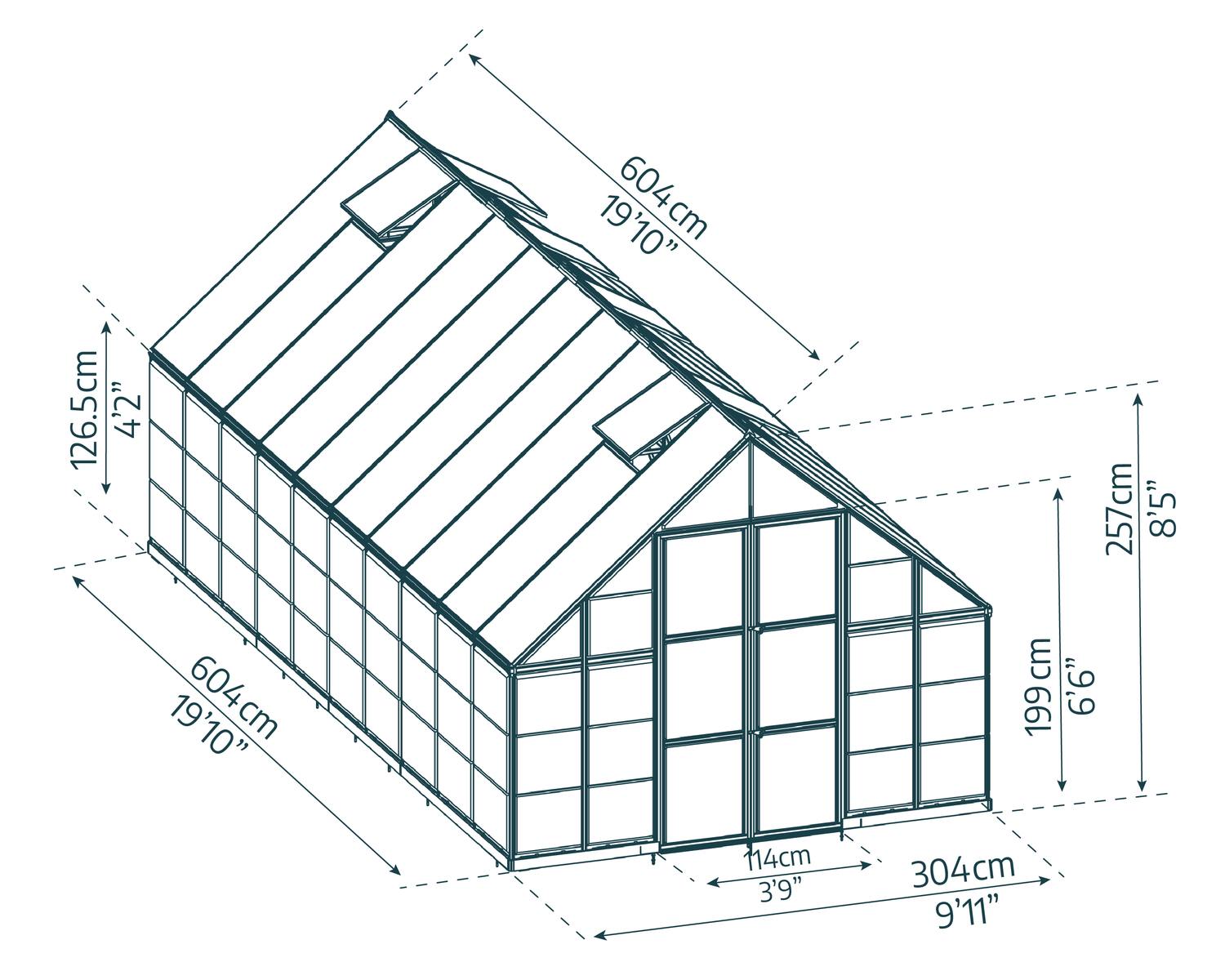 Balance Gewächshaus 304x604 cm - Silber Aluminiumrahmen mit Polycarbonatplatten