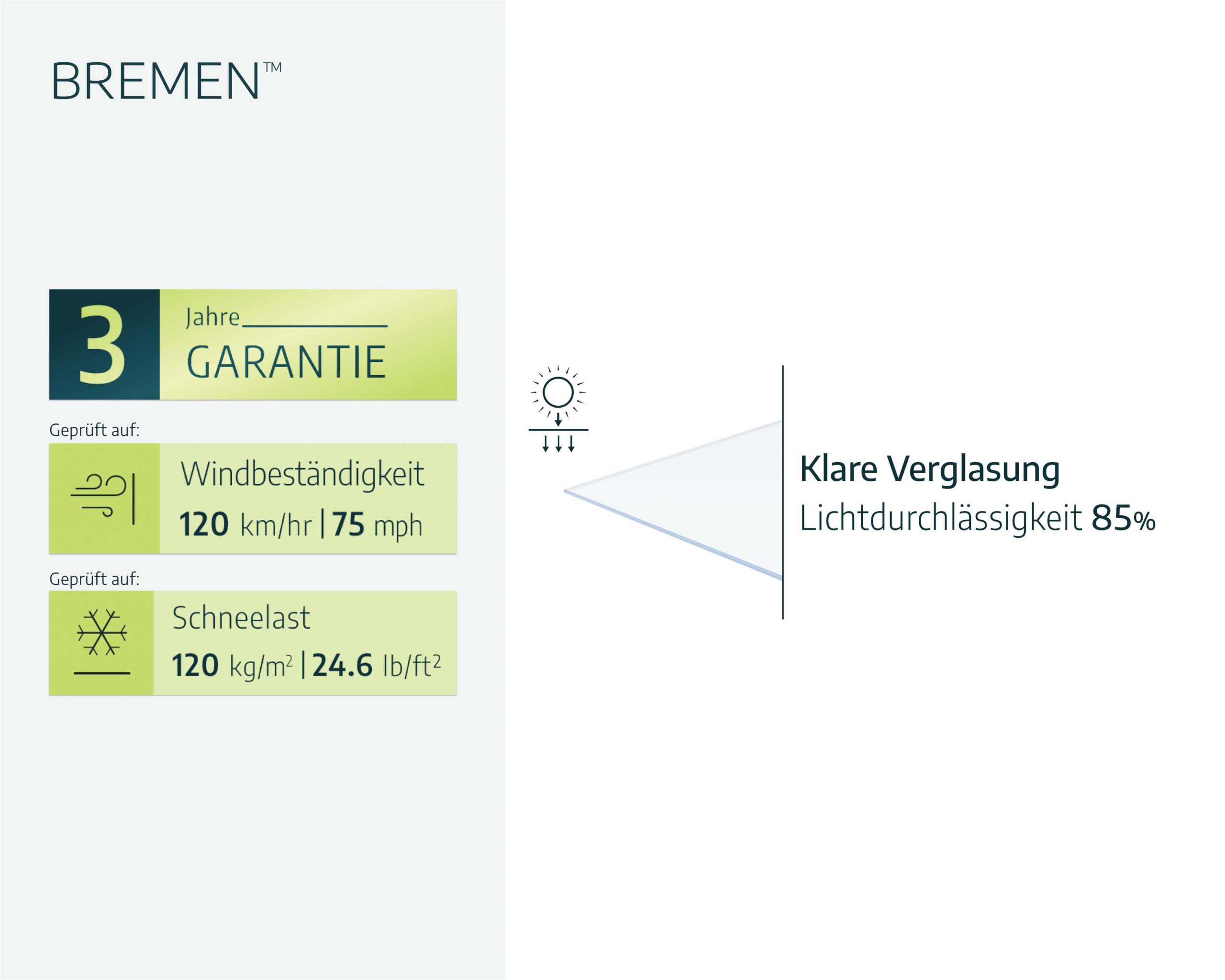 Bremen Rechteckvordach 205 cm x 93,5 cm x 19 cm in Grau, mit Transparente Paneele