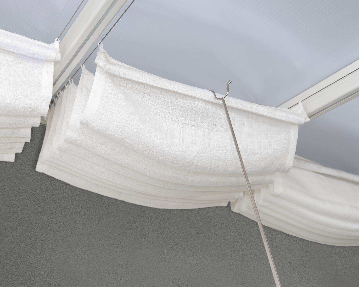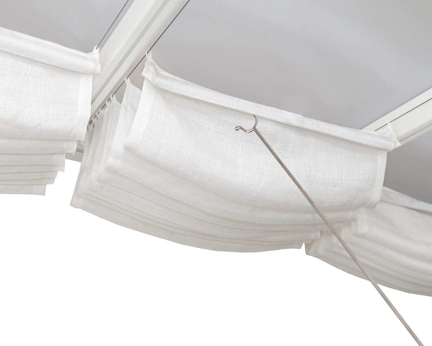 Die Canopia-Dachjalousien schaffen an Tagen mit langer Sonneneinstrahlung eine angenehme, schattige Atmosphäre und verringern die Hitze an sehr heißen Tagen, damit Sie die Zeit an Ihrem Lieblingsplatz in vollen Zügen genießen können. Dieses Beschattungsset ist aus leinenartigem Stoff hergestellt, überzeugt durch seine hohe Qualität und verleiht Ihrer Canopia Terrassenüberdachung ein besonders elegantes Design.