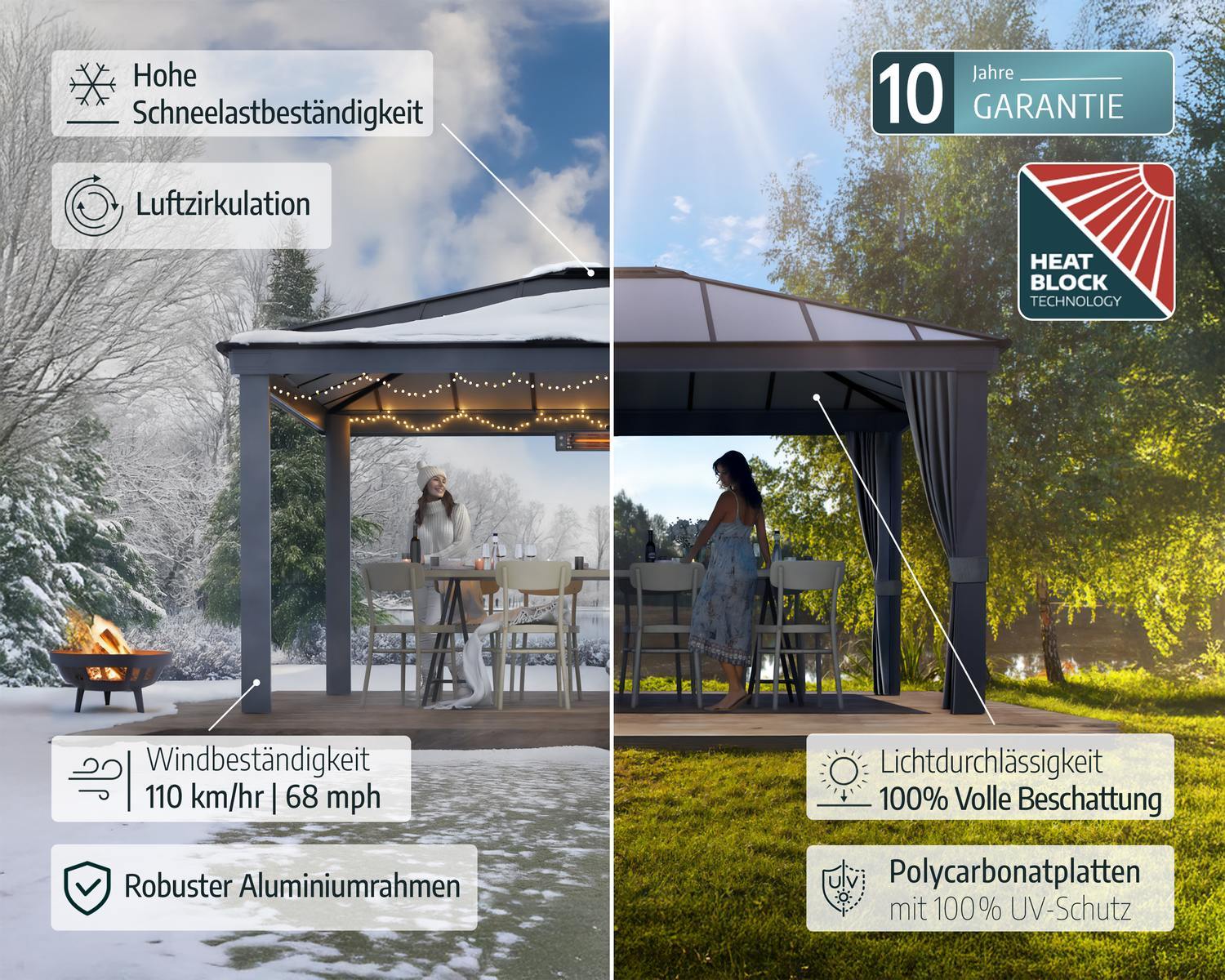 • Hardtop-Pavillon, rostfreier, pulverbeschichteter Rahmen aus massiver Aluminiumstruktur mit ultra-robustem Dachsystem