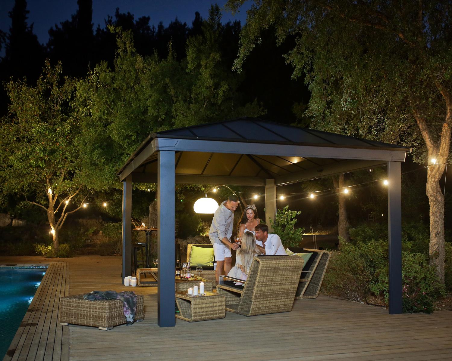 - Hardtop-Pavillon, rostfreier, pulverbeschichteter Rahmen aus massiver Aluminiumstruktur mit ultra-robustem Dachsystem