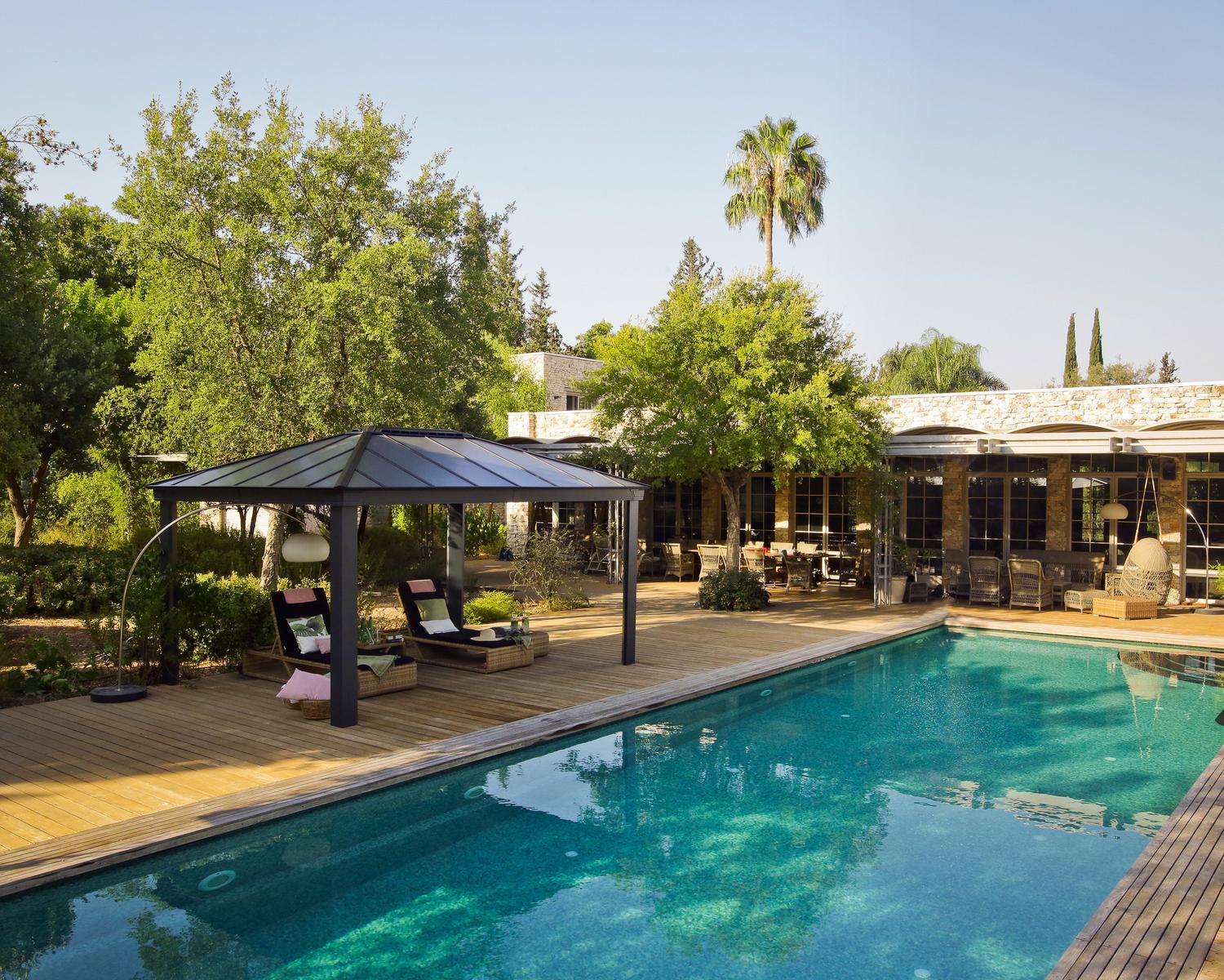- Ein Gartenpavillon kann sowohl mit Vorhängen als auch mit Netzen ausgestattet werden (separat erhältlich).