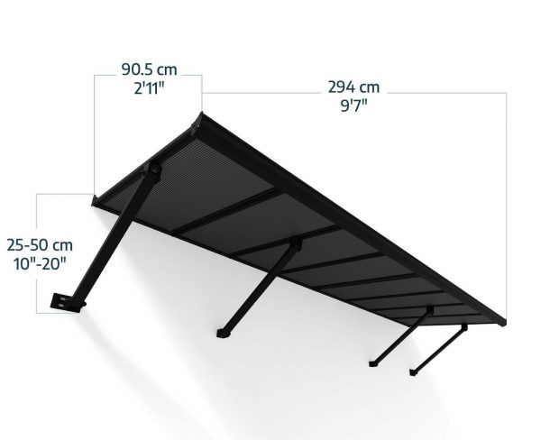 Augustine 294 cm x 90.5 cm x 50 cm Türvordach-Bausatz Kit - Schwarz Struktur & Undurchsichtige graue Paneele
