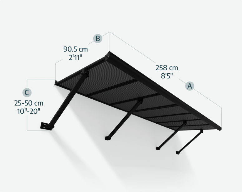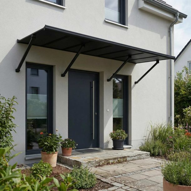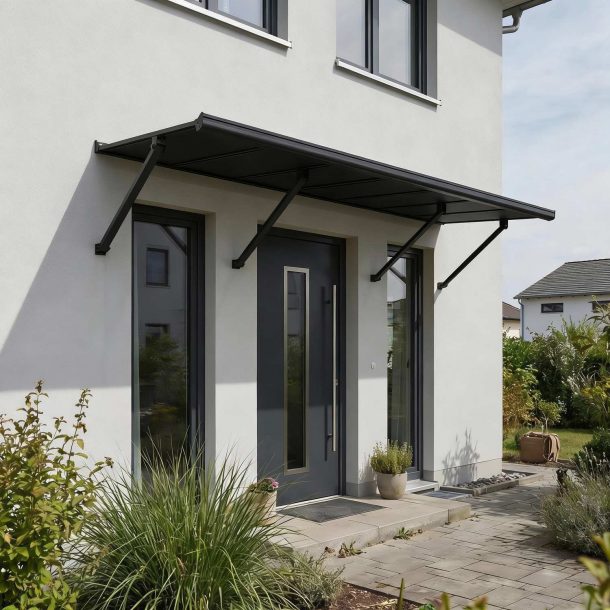 Das Canopia Augustine Türvordach vereint zeitlose Eleganz mit dauerhafter Stärke, um Ihren Eingangsbereich stilvoll zu schützen. Der markante schwarze Aluminiumrahmen, opake graue Doppelstegplatten und präzisionsgefertigte Stahlstützen bieten zuverlässigen Schutz das ganze Jahr über – und verleihen Ihrem Zuhause gleichzeitig einen modernen Look. Dank des flexiblen, verstellbaren Halterungssystems lässt sich das Augustine optimal positionieren – mit einem Abstand von 25 bis 50 cm über Ihrer Tür. Entwickelt, um Windgeschwindigkeiten bis 120 km/h und Schneelasten bis 120 kg/m² standzuhalten, schützt es Türen, Fenster oder Klimageräte zuverlässig vor Regen, Schnee, Hagel und intensiver Sonne. Ideal für Eingangs-, Seiten- und Hintertüren sowie Fenster und Garagen – das Augustine sorgt für einen trockenen, hellen und einladenden Eingangsbereich. Canopia Augustine – Langlebig. Wartungsfrei. Stilvoller Schutz für jede Jahreszeit.