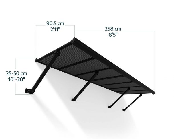 Augustine 258 cm x 90.5 cm x 50 cm Türvordach-Bausatz Kit - Schwarz Struktur & Undurchsichtige graue Paneele