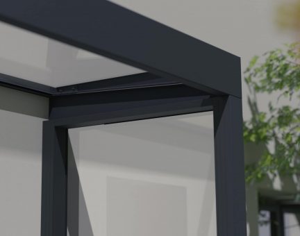 Lichtdurchlässigkeit, kristallklar, leicht zu reinigen und UV-beständig - Langlebige Konstruktion: Robuste anthrazitfarbene Struktur mit weiß-opaler Verglasung, starke, lasergeschnittene, pulverbeschichtete und verzinkte Stahltragarme.