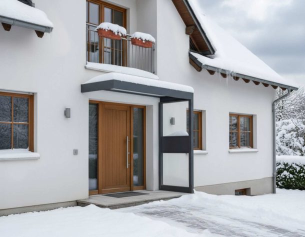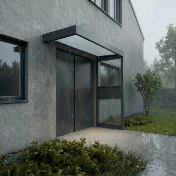 - Integrierte Regenrinne: Verstecktes Rinnen- und Abflusssystem hält Ihren Eingangsbereich trocken
