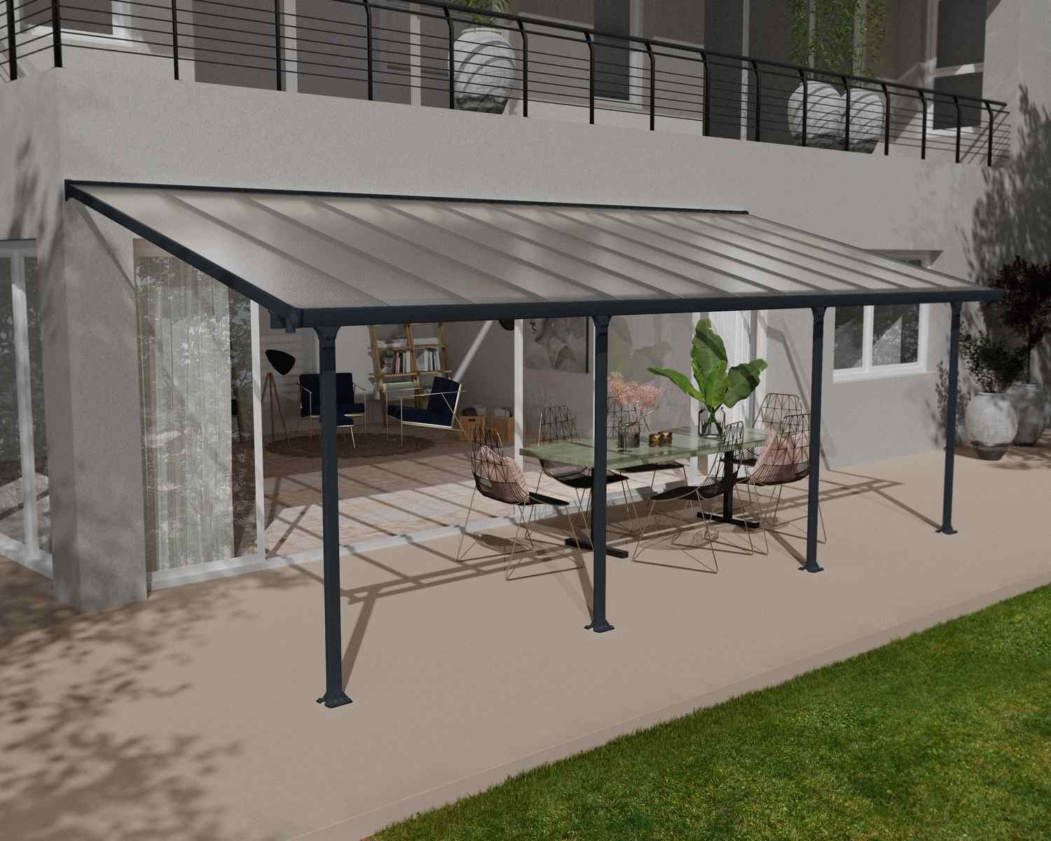- Sichere, ultra-robuste Terrassenüberdachung aus Polycarbonat und multifunktionale Struktur für den Außenbereich, die das ganze Jahr über einen hervorragenden Schutz bietet