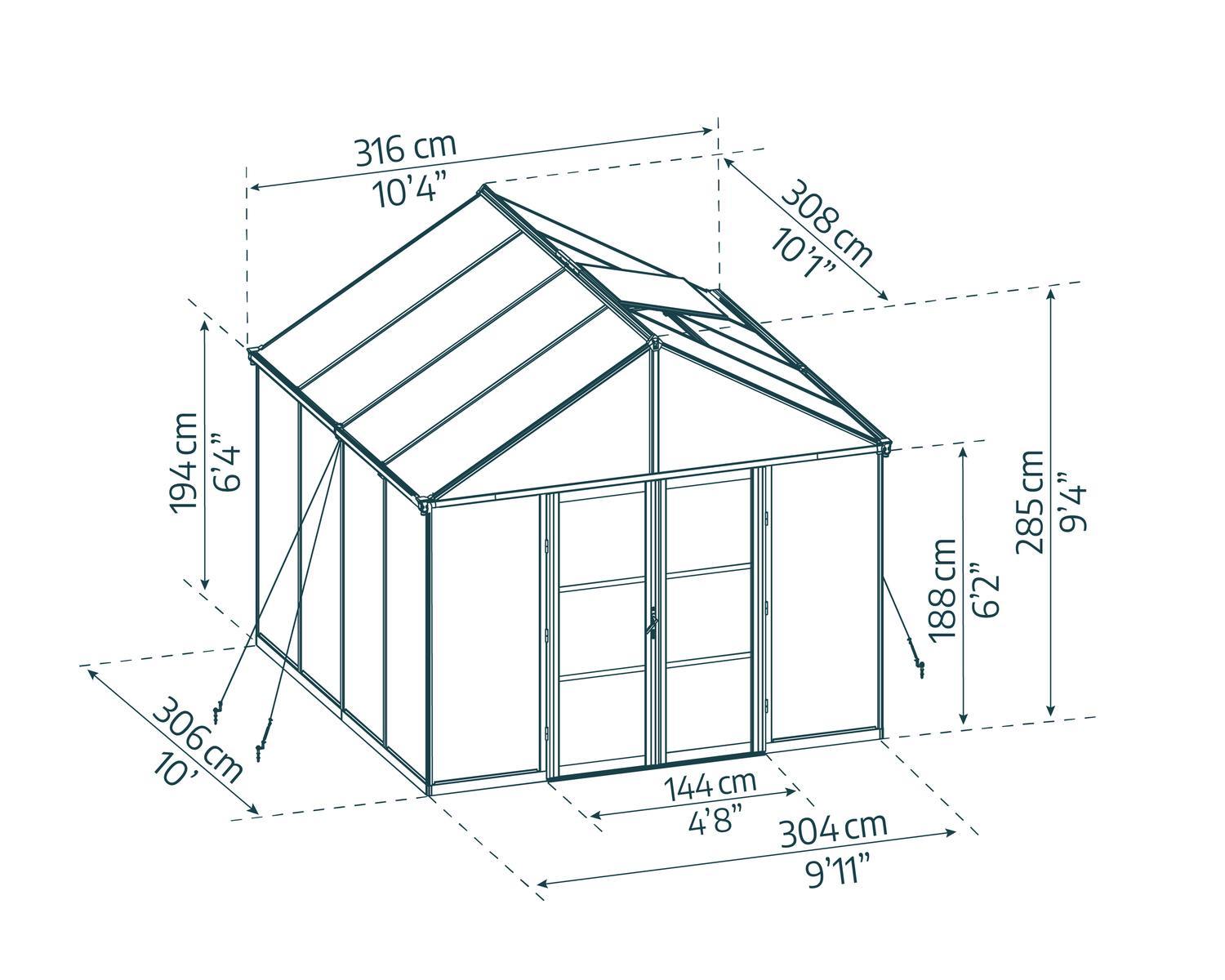 Aria Gewächshaus-Kit 308 x 316 cm - Schwarz Aluminiumrahmen mit klaren Paneele