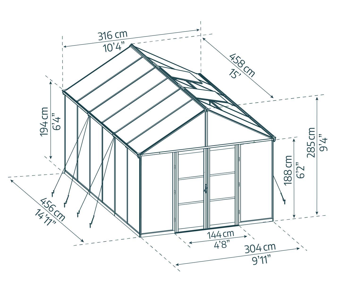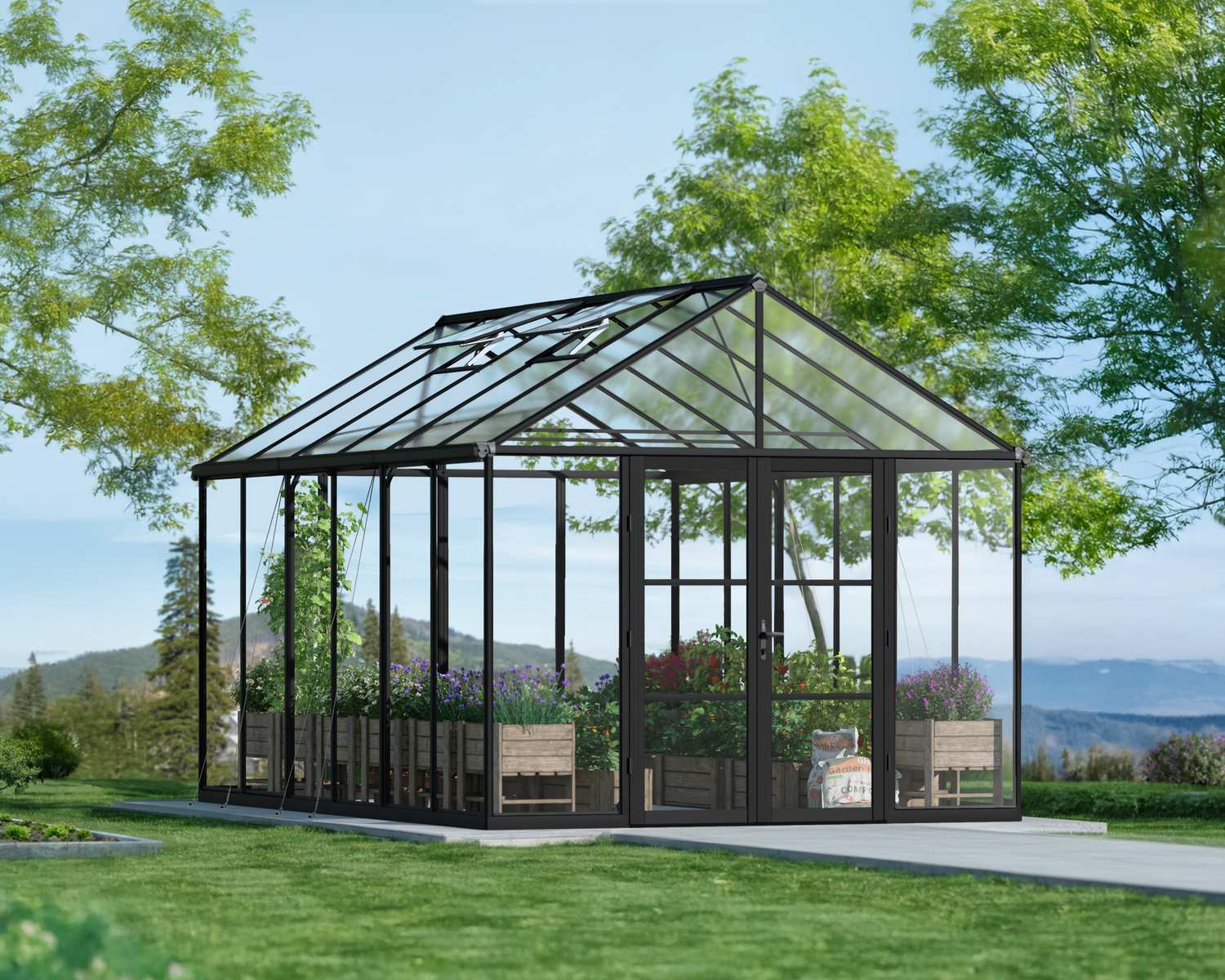 Aria Serie Gewächshaus-Kit 10 ft. x 15 ft. - Schwarz Aluminiumrahmen mit klaren Paneele