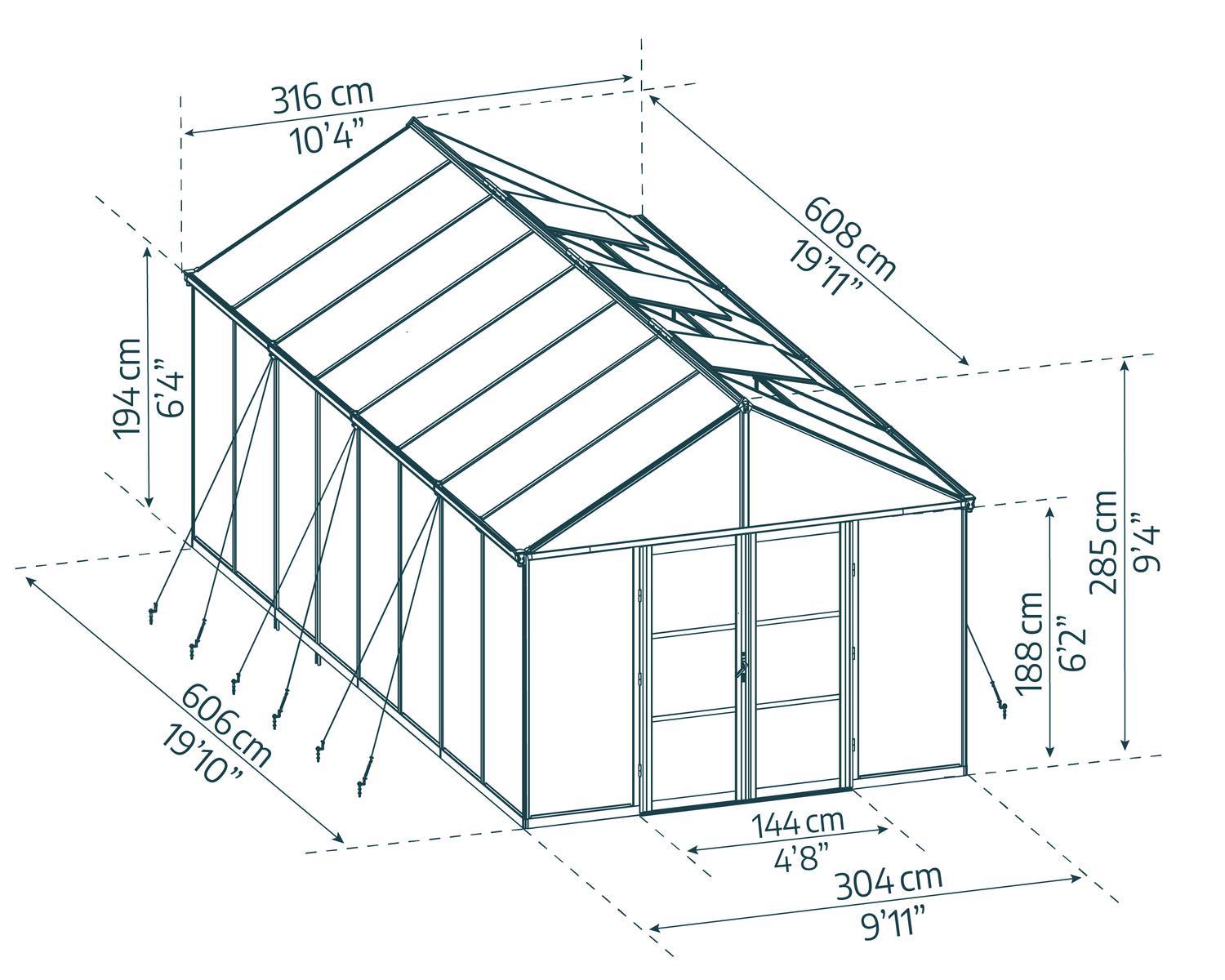 Aria Serie Gewächshaus-Kit 10 ft. x 20 ft. - Schwarz Aluminiumrahmen mit klaren Paneele