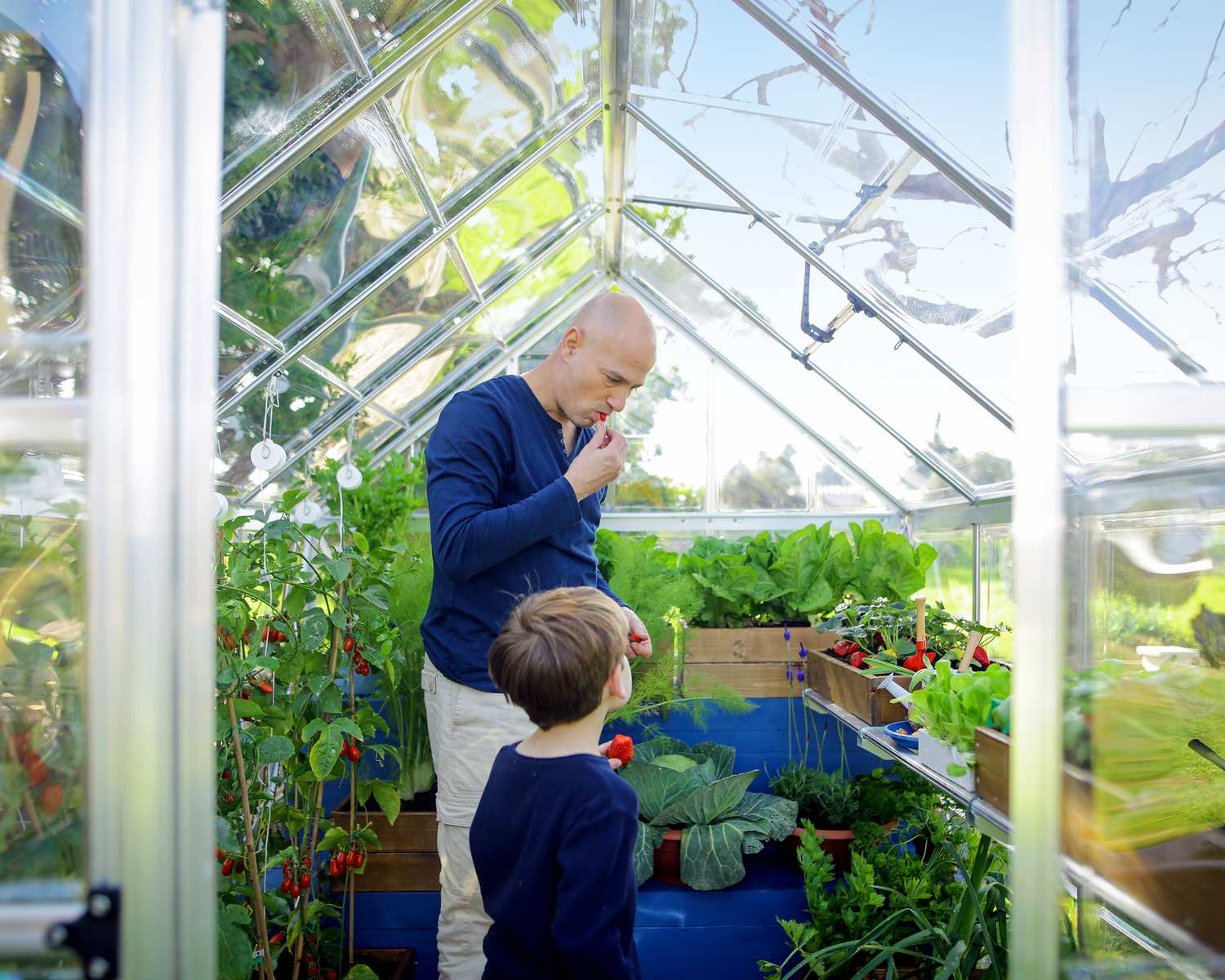 Der Gewächshausbausatz Harmony ist ein schöner Einstieg in die Welt des Hobbygärtnerns. Die Wand- und Dachpaneele des Gewächshauses bestehen aus einem nahezu unzerbrechlichen Polycarbonat, das die Lichtdurchlässigkeit von Glas hat, aber leichter, stärker und sicherer ist. Das kristallklare, einteilige Dach und die Wände schützen Ihre Pflanzen vor UV-Strahlen und bieten gleichzeitig das volle, direkte Licht, das sie zum idealen Wachstum benötigen. Dies ist besonders ideal für die Keimung von Samen und die Anzucht von Pflanzen, damit sich der Boden erwärmt und somit die Keimung gefördert wird. Der Rahmen des Hobbygewächshauses besteht aus rostfreiem Aluminium, das auf einem hochbelastbaren Sockel aus verzinktem Stahl montiert ist und so für eine äußerst stabile Struktur sorgt. Zu den weiteren Merkmalen gehören eine integrierte Regenrinne zur Ableitung des Regenwassers, eine Dachentlüftung und eine verschließbare Flügeltür mit magnetischem Verschluss, um die Temperatur und die Luftfeuchtigkeit zu kontrollieren. Das einzigartige Schiebepaneelsystem sorgt für eine bessere Isolierung, eine höhere Windbeständigkeit und eine einfachere Montage als bei herkömmlichen Gewächshäusern. Mit diesem Gewächshaus für den Hinterhof können Sie Ihre Anbausaison sogar noch verlängern, indem Sie im zeitigen Frühjahr beginnen und Ihr Pflanzenwachstum über den ersten Herbstfrost hinaus ausdehnen. Mit dem einfachen Aufbau, den langlebigen Materialien und den effektiven Funktionen ist das Gewächshaus Harmony die perfekte Wahl.