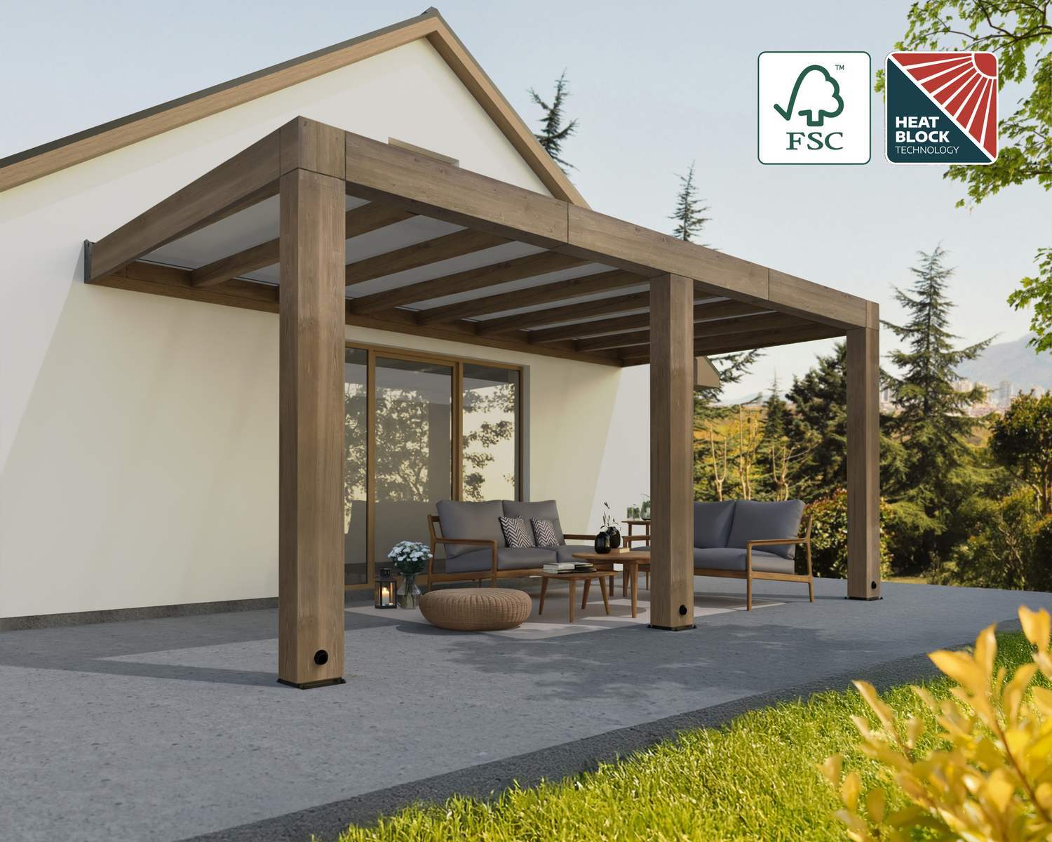 Die Helsinki Holz-Terrassenüberdachung ist einfach zu installieren und leicht zu pflegen.