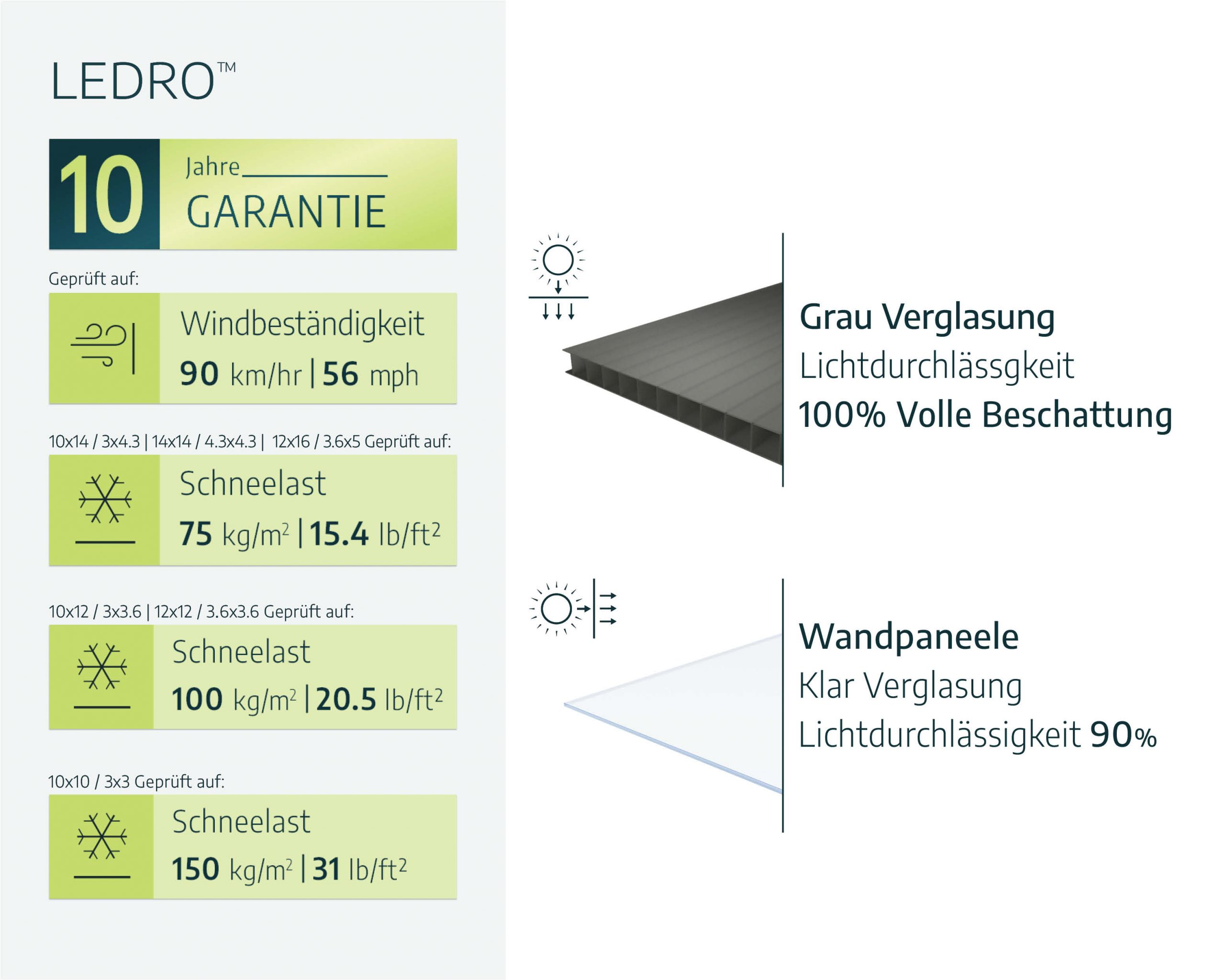 Ledro 430cm x 295cm Umschlossener Pavillon Bausatz - Graue Struktur & Hybride Paneele