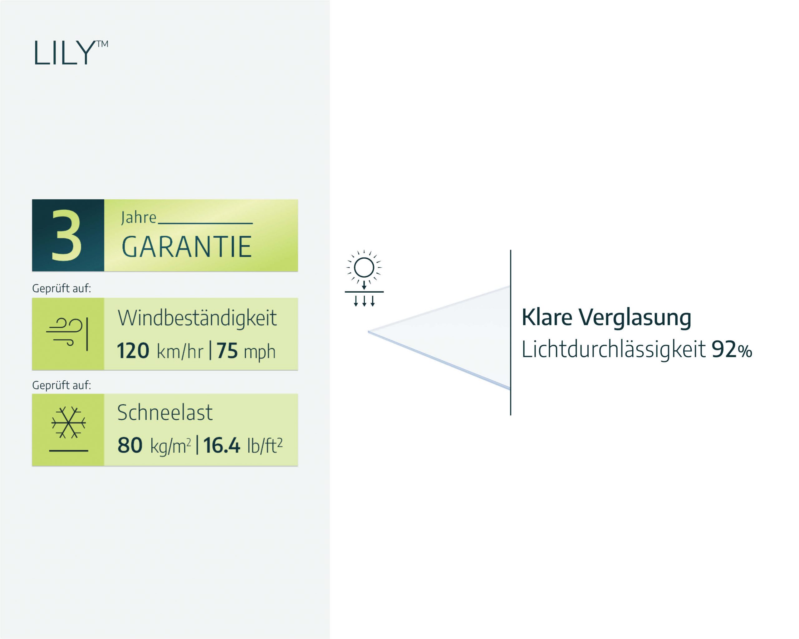 • Technische Informationen, einschließlich Abmessungen, Paneeldicke sowie Wind- und Schneelast, finden Sie in der Fotogalerie oben.