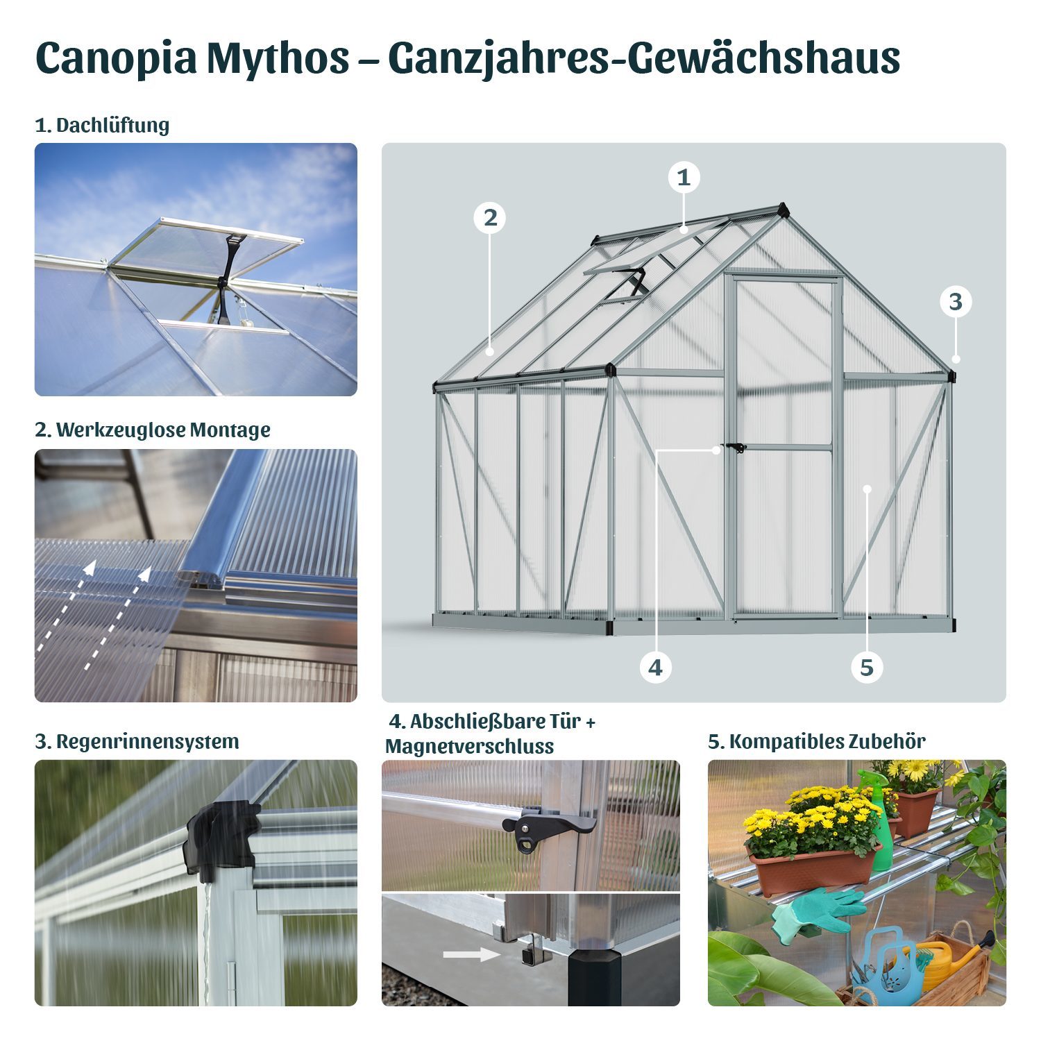 Mythos Gewächshaus 185x247 cm - Grün Aluminiumrahmen mit Polycarbonatplatten