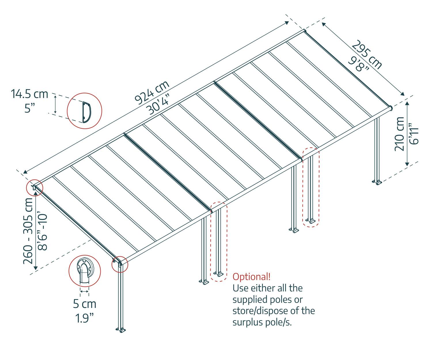 Ganz gleich, ob Sie einen Platz im Freien suchen, um Ihre Gäste zu bewirten, oder besondere Familienereignisse zu feiern oder um einfach nur in Ihrem Outdoor-Spa zu entspannen, die Olympia Terrassenüberdachung hat alles, was Sie brauchen. Sie bieten Ihnen den idealen Platz, um Ihren Garten zu genießen und sich am Ende des Tages zu entspannen. Die „Olympia“ Modelles sind robust, stabil und langlebig. Sie bestehen aus einer hochbelastbaren, pulverbeschichteten, aus einer korrosionsbeständigen Aluminiumstruktur und aus praktisch unzerbrechlichen, 100% UV-geschützten, lichtstreuenden, mehrwandigen Polycarbonat-Dachpaneelen. Seien Sie kreativ mit Ihrem neuen luxuriösen Aufenthaltsbereich im Freien, nämlich im olympischen Stil; verleihen Sie Ihrem Garten etwas zusätzlichen Glanz und verwandeln Sie Ihren Außenbereich in eine elegante Ergänzung Ihres Hauses und Ihres Lebensstils, die Sie das ganze Jahr über genießen können.