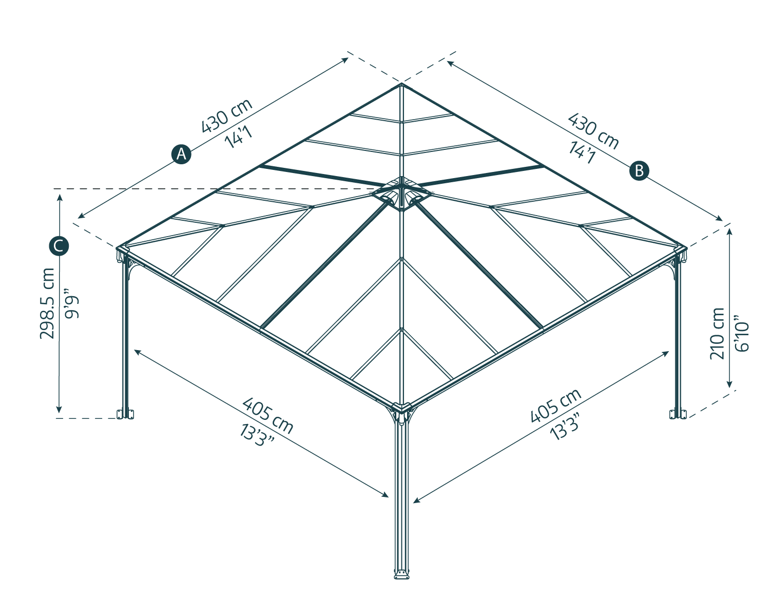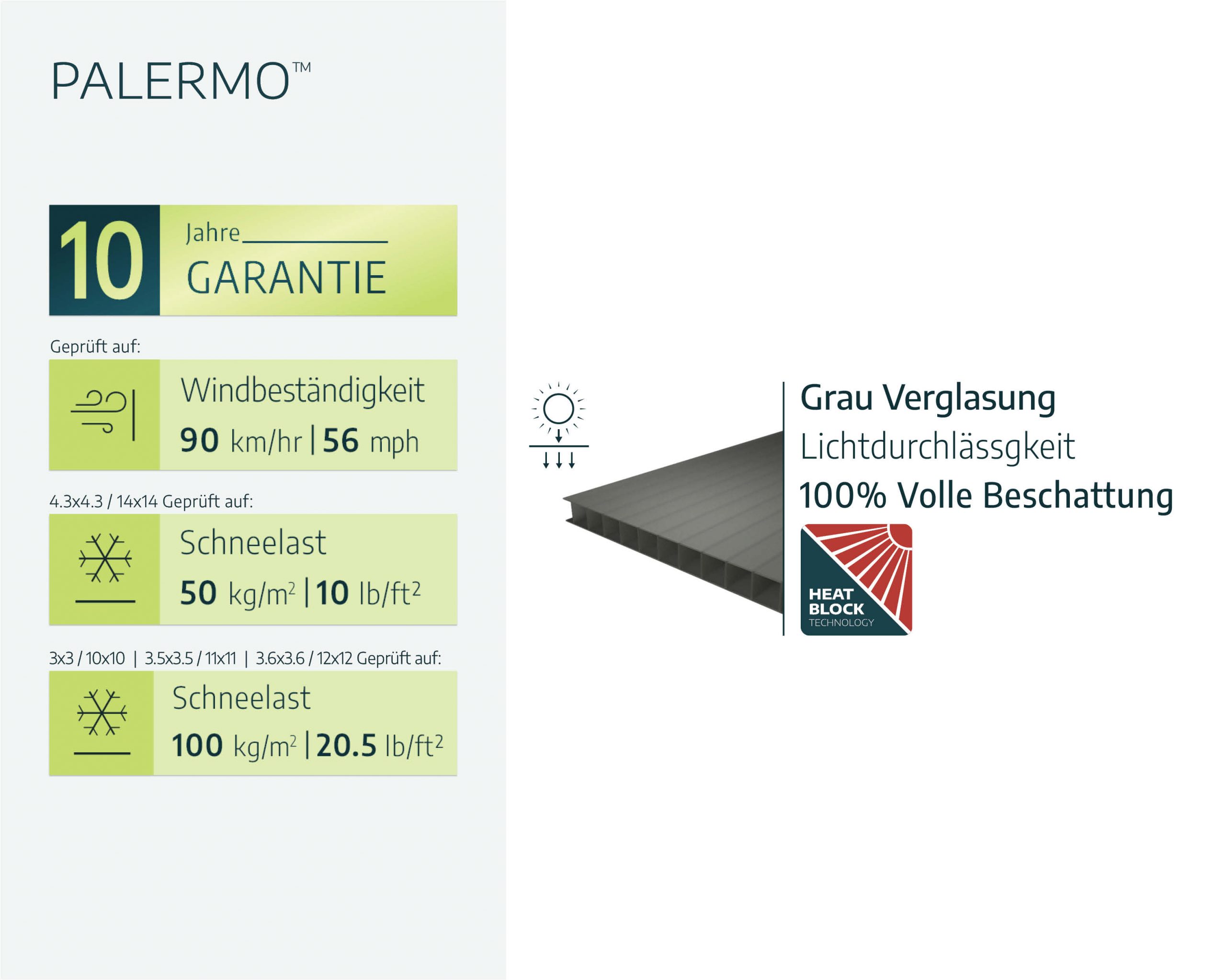 Palermo Gartenpavillon 4.3m x 4.3m, Aluminium Grau