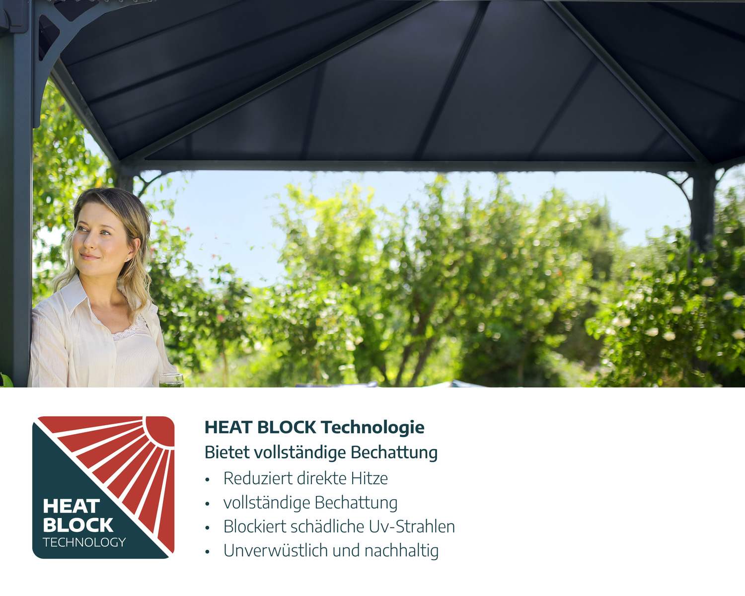 Genießen Sie die Natur in der komfortablen Lounge Ihres Gartenpavillons Modell Monaco. Perfekt für einen Rückzugsort während der heißen Tage und kühlen Sommernächte, für Unterhaltung im Freien, über einem Outdoor-Spa oder um einfach mehr Zeit im Freien zu verbringen. Ergänzen Sie den Pavillon mit einem Insektenschutznetz und einer Reihe von Vorhängen für einen privaten Rückzugsort im Garten. Der offene Pavillon Palermo ist robust, langlebig und bietet Ihnen das gewisse Etwas in Ihrem Garten, das Sie immer wieder genießen möchten.