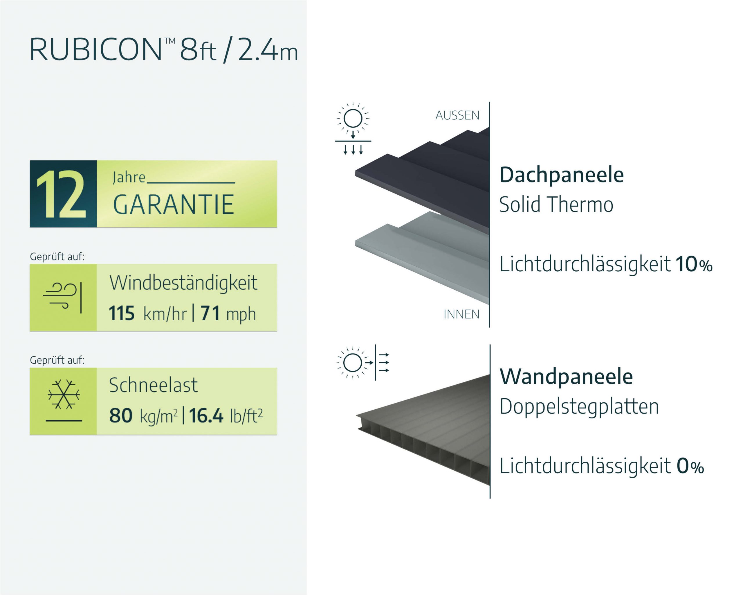 (Achten Sie darauf, dass Sie bei der Montage genügend seitlichen Platz zum Einschieben der Dachpaneele haben.) - Technische Informationen, einschließlich Abmessungen, Paneeldicke sowie Wind- und Schneelast, finden Sie in der Fotogalerie oben.