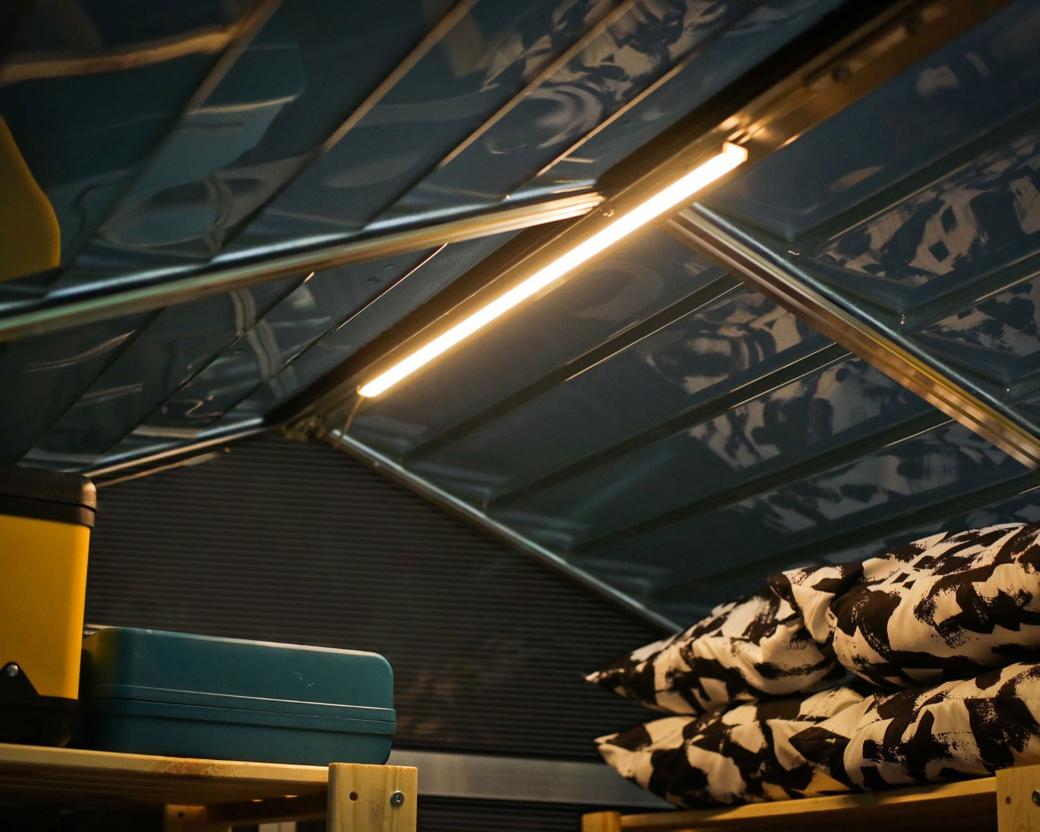 • Das extrem widerstandsfähige, schindelähnliche Polycarbonatdach lässt sanftes natürliches Licht durch und bleibt gleichzeitig von außen undurchsichtig.