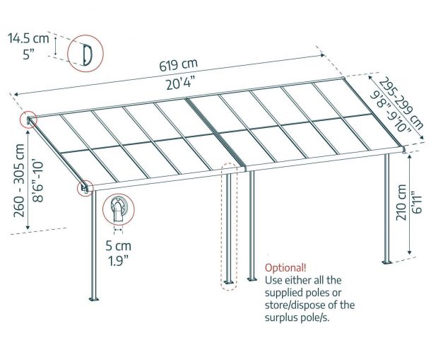 - Resilient Panels: The 6 mm matte opaque grey roof panels have full shade glazing with „Heat Block Technology“, preventing the sun’s rays from shining through making it cooler and protecting your outdoor space. Canopia polycarbonate panels are 100% UV protected, ensuring they do not turn yellow or become brittle over time.