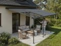Erleben Sie genau die richtige Menge an Schutz mit der Sierra Cabrio Terrassenüberdachung. Das flexible Design mit verschiebbaren Dachpaneelen verleiht Ihrem Außenbereich eine moderne Note, ohne das Erscheinungsbild Ihres Hauses zu beeinträchtigen. Die Canopia Cabrio Terrassenüberdachung ermöglicht Ihnen die volle Kontrolle über Sonnenlicht und Luftzirkulation – sie bietet Schatten, Belüftung und vollständigen Regenschutz. Die Cabrio kombiniert die Langlebigkeit einer Polycarbonat Überdachung mit der Funktionalität eines Schiebedachs – so genießen Sie die Vorteile eines klassischen Terrassendachs mit der Flexibilität einer Markise. Nutzen Sie Ihre Terrasse bei jedem Wetter: ob mit Freunden oder beim entspannten Lesen auf dem Liegestuhl. Im Sommer schützt sie vor UV-Strahlen oder lässt den Rauch vom Grill entweichen. Das Dach lässt sich ganz einfach mit einer Stange öffnen oder schließen. Dank der flexiblen Positionierung bestimmen Sie die Höhe der Wandbefestigung, den Abstand zum Haus und den Abstand zwischen den vorderen Pfosten. Trotz des flachen Dachs sorgen integrierte Regenrinnenköpfe dafür, dass Regenwasser abgeleitet wird – so bleiben Sie und Ihr Außenbereich stets trocken und nutzbar.