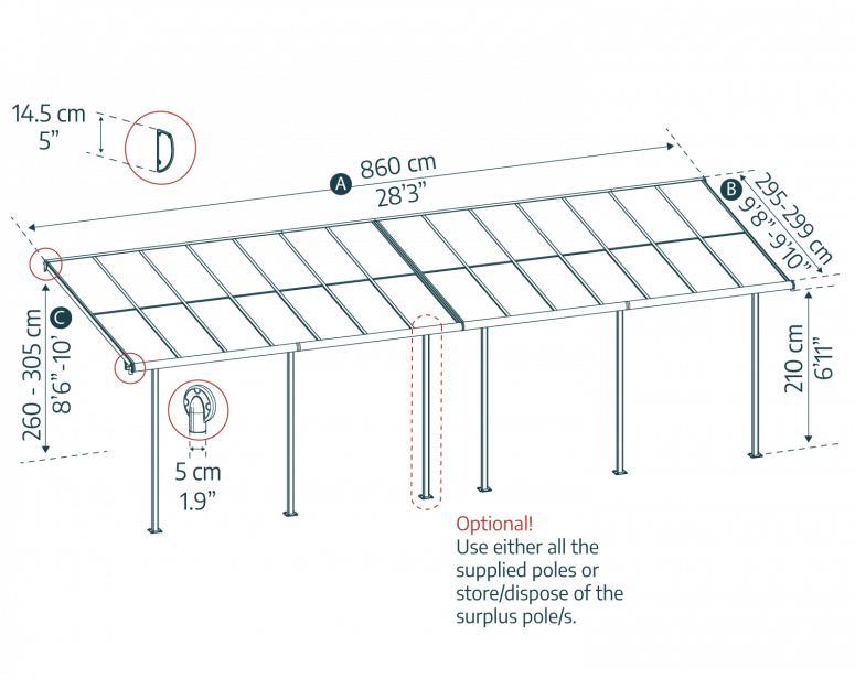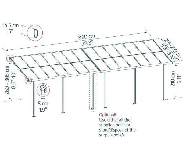 Sierra Cabrio 860m x 299m Terrassenüberdachungs-Bausatz - Graue, Undurchsichtige graue