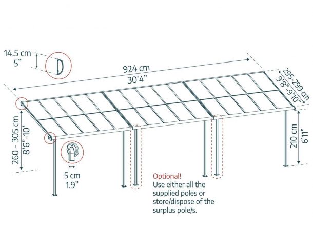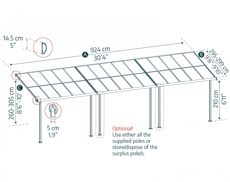 | C | Höhe | 260-305cm | 8'6"-10'ft |