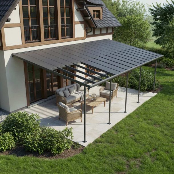 - Modernes Design : Außergewöhnlich flexibel – Sonne oder Schatten ganz nach Wunsch. Das Dach mit verschiebbaren Paneelen überzeugt durch klare Linien und ein elegantes Erscheinungsbild, das die Optik Ihres Hauses aufwertet.