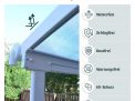 Diese wartungsfreie Überdachungslösung mit Klarglas kann als Terrassenüberdachung, Carport, Sonnenlounge oder Spa-Abdeckung verwendet werden, lassen Sie Ihrer Fantasie freien Lauf. Genießen Sie Familientreffen und Grillpartys, ohne dass das Wetter Ihnen den Spaß verdirbt. Diese leistungsstarke Struktur wurde so konzipiert, dass sie von 2 Personen leicht montiert werden kann, wobei das Click N' Lock-Dachsystem verwendet wurde, das das Eindringen von Wasser in die Verglasung verhindert. Das Sierra Terrassenüberdachungs-Kit bietet Ihrer Familie einen eleganten, robusten und rostfreien Ganzjahresplatz für die kommenden Jahre.