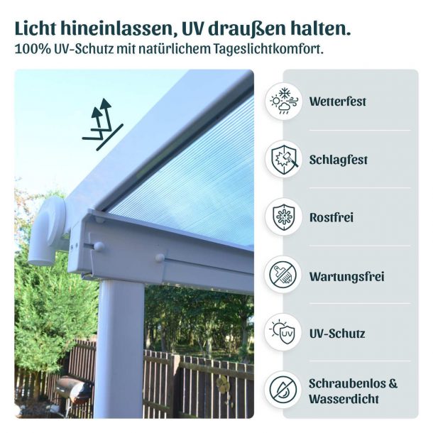 - Terrassenüberdachung wartungsfrei, langlebig durch besonders langlebige Materialien