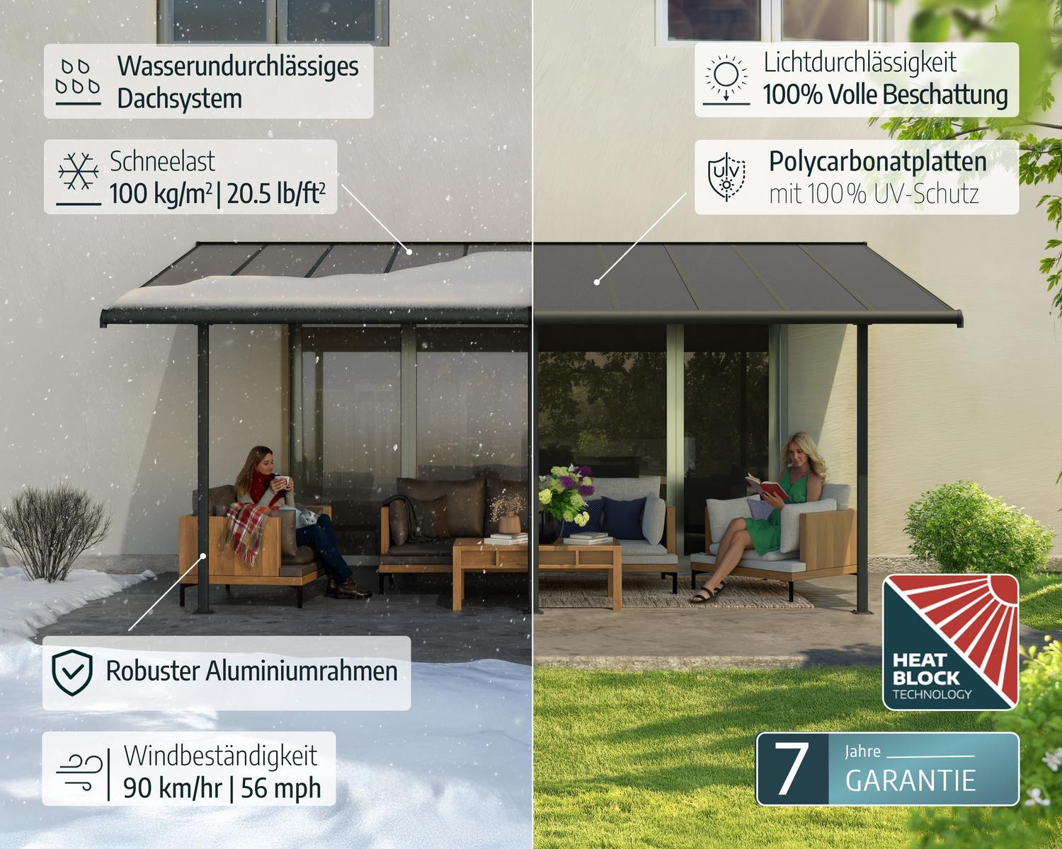- Sichere, ultra-robuste Terrassenüberdachung aus Polycarbonat und multifunktionale Struktur für den Außenbereich, die das ganze Jahr über optimalen Schutz bietet