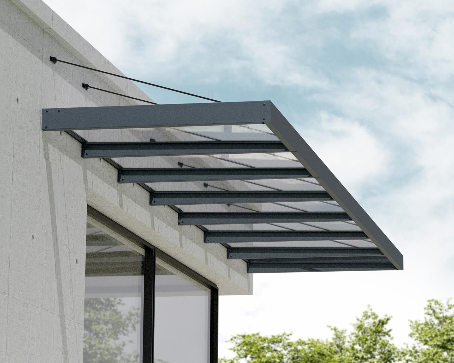 Sophia XL Rechteckvordach 660 cm x 140 cm x 67 cm Türvordach-Bausatz Kit - Graue Struktur & Opalweißes Paneele