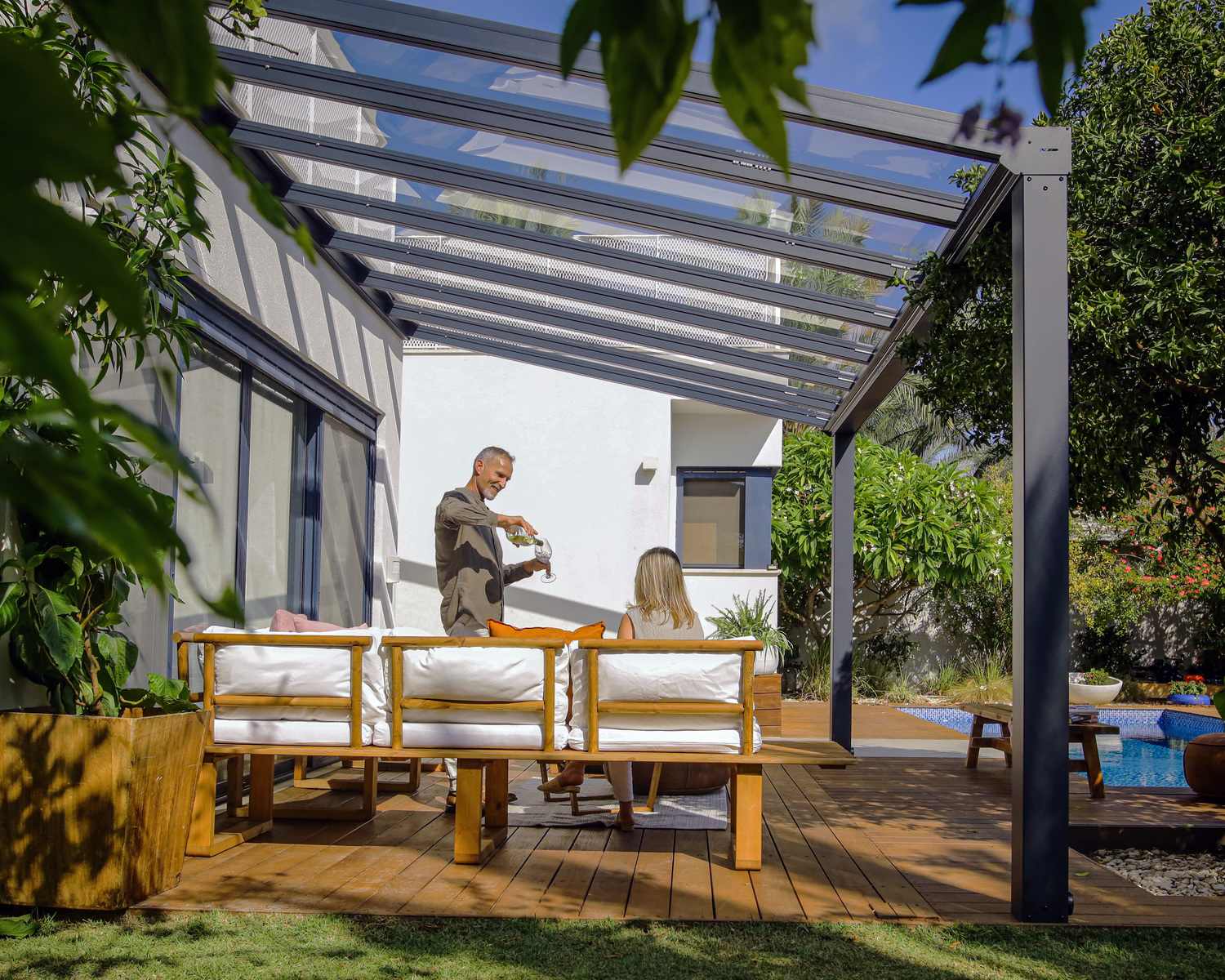 - Einzigartiges schraubenfreies Terrassenüberdachungssystem bietet ein rostfreies Hardtop, leckfreie Verglasung und ein klares Design