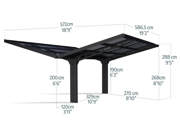 Sydney Doppelcarport Apex 572cm x 538cm, 33.5m² Schwarz