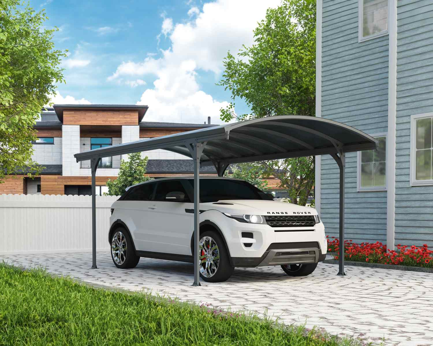 Machen Sie das Beste aus Ihrem Platz mit dem eleganten Vitoria Carport. Das geschwungene Dach wurde zum Schutz Ihres Fahrzeugs oder als Terrassenüberdachung entworfen und sieht überall gut aus, wo Sie es aufstellen. Mit einer Einfahrtsbreite von über 275 cm und einer lichten Höhe von 230 cm bietet der Vitoria Carport viel Platz zum Parken und Begehen Ihres Fahrzeugs oder zum Verweilen darunter. Dieser robuste Einzelcarport verfügt außerdem über eine Schneelastkapazität von bis zu 100 kg/m². Dieser Einzelcarport ist so konstruiert, dass er bei Bedarf umgestellt und wieder aufgebaut werden kann. Zu den weiteren Merkmalen gehören eine Regenrinne zur Ableitung des Regenwassers, Dachpaneele aus hochschlagfestem Polycarbonat, die vollen Schatten spenden, und ein rostfreier Aluminiumrahmen. Verlängern Sie die Lebensdauer Ihres Fahrzeugs und genießen Sie mehr Zeit im Freien mit dem Victoria Carport Kit.